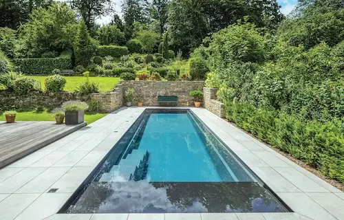 The Linear with Cover offers a unique high waterline feature with a 1.5 m flat bottom and a width of 3.3 m making it ideal for smaller backyards. The auto cover area is placed at the front of the pool. This is a showcase pool design that can also be complimented with inground pool lights to accent its classic rectangle shape.