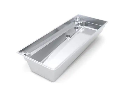 One of our European style inground fiberglass swimming pools, this features a distinctive and eye-catching high-water line. It allows the water in your pool to be almost to the very top of your pool creating a visually stunning swimming pool design. Style and function in one pool.
